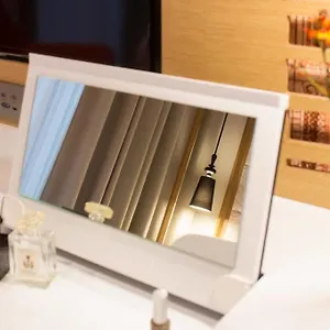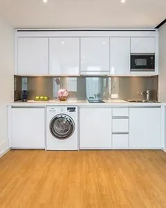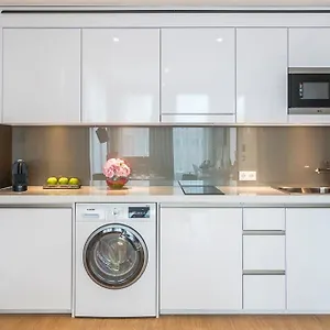 Es bietet Zimmer mit einem privaten Safe, einer Küchenzeile und einem Schreibtisch.