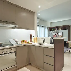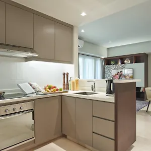 Some of the 110 soundproof rooms at the Somerset Bencoolen Singapore face the mountain and comprise a balcony and a terrace. Guests can make use of a minibar fridge, and relax with a flat-screen cable TV. Self-catering facilities in a guest room include a kitchenette with a microwave oven, a refrigerator, and kitchenware.